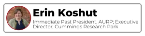New Beginnings: Voices of Impact – Fireside Chat Each research park and innovation district is the product of a distinctive combination of values, place, opportunities, and people. The “voice” of each park is its unique impact. This session will lay out the process of achieving impact – beginning with value proposition, identifying audience and constituency, assessing funding and resource opportunities, creating a framework for connection, and crafting a roadmap for execution. Following a high-level overview, Erin Koshut will join us for a fireside chat to discuss the broad application of this process at Cummings Research Park.